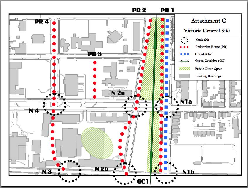 5. Opportunities to re-capture VG Parking lot lands and create a promised Grand Allee from the Citadel to Point Pleasant Park are ignored. (See illustration below, taken from 2007 HRM staff report.)